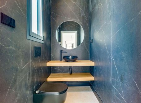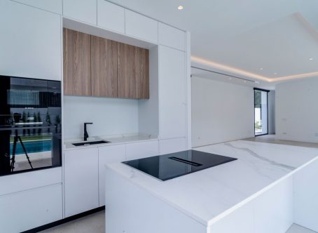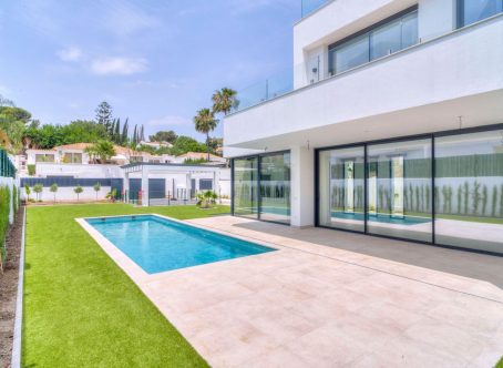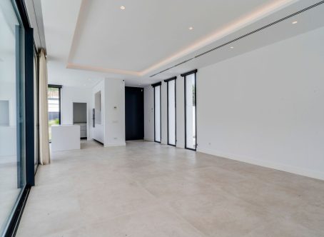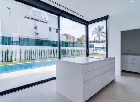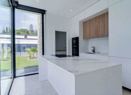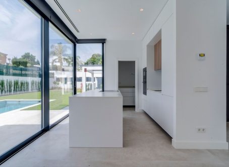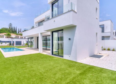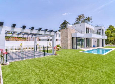 Modern luxury detached villa in a fantastic location, bordering a protected nature reserve and within walking distance of shopping centres and other amenities. Villa Monte Biarritz is situated near Marbella, Benahavis and Puerto Banús and within easy reach of several golf courses. New construction with modern qualities and finished to a high standard. Facing south this villa has the best orientation for sun and is on a quiet dead end street but at the same time you can walk to the supermarket, restaurants or even the golf club. Top quality has been used in the bathroom fittings and a modern designed kitchen with top brands and with large floor tiles which gives the villa a distinct look. You must see this in person to apprecuate the quality. THE DESIGN: The villas offer a modern choice of architectural design with a lot of natural light solutions, which perfectly fits them within the permanently modernizing neighbourhood and the green environment. THE QUALITIES: The interior spaces have been attentively planned to offer comfort and quality to the new home owners. The main focus was made on the use of the well known innovative design, high tech features and unbeatable quality of "Porcelanosa" materials, which is today a major reference in both the Spanish and the International market. THE APPLIANCES: Not only do "Bosch" appliances fit seamlessly with any kitchen but the performance and reliability of its high-quality products also perfectly complement its users daily routines. We chose "Bosch" for its features and functions, which make every day easier and more enjoyable. THE COMFORT: Although we have one of the world´s best climates, winters can also get sometimes a little chilly. Our villas offer an under floor heating solution throughout the ground floor and the first floor level, which creates an effortless cozy barefoot winter feeling and undeniable modern luxury extra to the new style home.