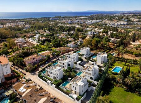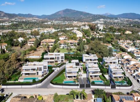 New modern villa situated near San Pedro town and close to the golf courses of Atalaya, El Paraiso, Guadalmina and Los Flamingos. Within walking distance to a supermarket, various shops and restaurants. From the solarium of the villas, you can see the Mediterranean Sea on the horizon and, in addition, the Saladillo beach and Guadalmansa beach are perfect for a cocktail in their beach bars. In the garden with natural grass of the villa is the individual infinity pool with interior lighting and pre-installation for air conditioning. On the large outdoor porch, you can cook on the built-in gas barbecue for family and friends’ gatherings. The villa has a ground floor with main bedroom, first floor and solarium, a double-height lounge area, dressing room in the main bedroom and fittings for a lift. With large balcony doors on both the ground and first floors, you will fall in love with the views of the garden and the scent of the plants and vegetation. There is also a basement where your private garage for two cars is located. The villa is under construction with top quality materials and if you do not leave it too late you will be able to personalise certain aspects in the villa and make some modifications. Top brands and qualities, underfloor heating throughout and aerothermal technology providing high energy efficiency. With full cost-free materials customization, interior design and equipment service, flexible interior architecture, full after-sales and concierge service, and the guarantee of one of the leading and longest established European developers. There is also possibility to have a four bedroom villa.
