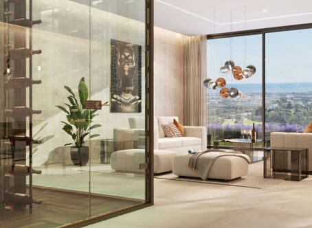 We present you a new, exclusive project in El Madroñal with stunning panoramic views of the golf course, sea and the coastline extending to Gibraltar and Africa. The villa features 3 levels, 6 bedrooms, 7 bathrooms, 3 toilets, and 4 kitchens: main, service, personnel, and outdoor. Every bedroom includes an en-suite bathroom and private terrace, offering spectacular sea and golf views. The lower level is dedicated to leisure, with various areas including a separate apartment for personnel. Additionally, there will be a terrace with a fire pit, different chill-out areas, a floating infinity pool made of purifying Indonesian stone with a jacuzzi, and a garden. An exceptional feature of this villa is the breathtaking views available from almost every room, including the gym and SPA on the lower level. On the ground level, the main entrance leads to the left wing where you'll find open space living and dining areas with a kitchen boasting double-height ceilings. The living area features a hanging chimney operated with a remote control, allowing it to be moved around. A door in the kitchen connects to the service kitchen, which has private access for personnel. The living room area opens directly onto the terrace, both covered and uncovered, featuring dining and chill-out areas, as well as a fire pit with seating. The terrace also has an infinity floating pool made of Indonesian stone which purifies the water. The pool has a jacuzzi and built-in sunbeds. Additionally, there's an outdoor kitchen and barbecue area. The villa is equipped with electric windows controllable via remote, allowing to open the living area to the terrace, creating a large open space. The right wing of the ground level houses two bedrooms with en-suite bathrooms and private terraces. This level also features a small pool with a waterfall leading to the lower level. The first floor has two wings as well. The left wing features the spacious master bedroom with an en-suite bathroom, toilet, and walk-in closet, which includes a central island for storing the most valuable items of your wardrobe, such as jewelry and unique bags. The island also includes a hidden feature. The master bedroom's private terrace includes a chill-out area and sunbeds. The left wing also includes an office and library, where the windows can also be fully opened, similar to the living area. The right wing contains two more bedrooms with en-suite bathrooms and private terraces. The lower level includes a wine cellar, bar, cinema, multipurpose room with billiards and chill areas, fully equipped gym, and spa with an indoor heated pool, sauna, Turkish bath, and hydromassage shower. The gym provides panoramic views. The SPA not only offers stunning coastal views but also showcases the villa's waterfall. Furthermore, this level includes a service apartment with its own living area, kitchen, and bathroom, featuring a private entrance and direct access to the main service kitchen. The villa offers a private garage for three cars with a glass wall providing spectacular views. Additional parking space for three cars is available outside. The latest echnologies, such as Home Automation, will be integrated, allowing control of various features from your phone. Also, in just two years, a new road will connect Madroñal directly with Real de la Quinta and Nueva Andalucia. Combining the latest technologies with timeless elegance and luxury, this villa can become your dream home. Offering breathtaking panoramic views from almost every corner of the villa, luxurious amenities, and meticulous attention to detail.