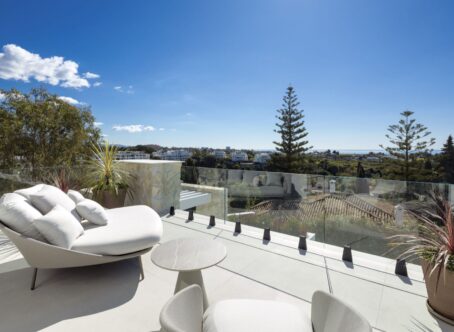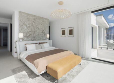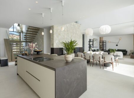Recently completed, this villa is a brand-new, high-specification villa located in an exclusive gated development of just three luxury residences within the La Quinta area. Spanning three levels and designed for effortless contemporary living, this five-bedroom home offers a seamless blend of interior sophistication, outdoor comfort, and panoramic views over the Mediterranean Sea and La Concha mountain. The property offers a total built area of 913 sqm, which includes 307 sqm of carefully designed terraces. Inside, the home features five bedrooms in total. The master suite stands out with its expansive layout, walk-in dressing area, and spa-style bathroom. Four additional guest bedrooms ensure comfort for family and visitors, supported by three well-appointed bathrooms and an extra guest toilet. A standout feature is the open-plan 120 sqm kitchen and living area. This central space has been designed to connect effortlessly with the dining zone and lounge, and extends directly onto the south-facing terrace. From here, you step out to the saltwater pool deck—offering uninterrupted sun exposure and a seamless flow between indoor and outdoor living. The villa is equipped with a private gym, a large custom wine cellar, and a multifunctional entertainment space complete with bar, billiards table, and a dedicated TV lounge. The outdoor kitchen, set to frame the sunset perfectly, allows for effortless dining and hosting for 8–10 guests, all set within a sculpted tropical garden. Functionality and high performance are core to the villa's design. The home is powered by a state-of-the-art automation system that works with both Apple HomeKit and Lutron’s own app. Every room has its own A/C zone, while underfloor heating ensures year-round comfort. With an A-rated energy efficiency certification, the villa operates economically and in harmony with its natural surroundings. A three-car closed garage, a large utility/laundry room, and top-quality materials throughout make this a turnkey solution for those seeking an elevated standard of living. The property is part of a secure 24-hour gated community in La Quinta. This villa is a rare opportunity to own a brand-new, energy-efficient, architecturally striking home in one of the most secure and naturally beautiful areas of the coast. It’s more than a residence—it’s a modern lifestyle with the perfect balance of privacy, technology, and proximity to everything that matters.