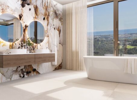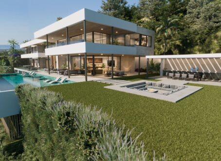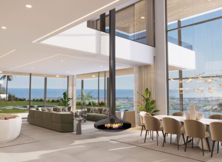 We present you a new, exclusive project in El Madroñal with stunning panoramic views of the golf course, sea and the coastline extending to Gibraltar and Africa. The villa features 3 levels, 6 bedrooms, 7 bathrooms, 3 toilets, and 4 kitchens: main, service, personnel, and outdoor. Every bedroom includes an en-suite bathroom and private terrace, offering spectacular sea and golf views. The lower level is dedicated to leisure, with various areas including a separate apartment for personnel. Additionally, there will be a terrace with a fire pit, different chill-out areas, a floating infinity pool made of purifying Indonesian stone with a jacuzzi, and a garden. An exceptional feature of this villa is the breathtaking views available from almost every room, including the gym and SPA on the lower level. On the ground level, the main entrance leads to the left wing where you'll find open space living and dining areas with a kitchen boasting double-height ceilings. The living area features a hanging chimney operated with a remote control, allowing it to be moved around. A door in the kitchen connects to the service kitchen, which has private access for personnel. The living room area opens directly onto the terrace, both covered and uncovered, featuring dining and chill-out areas, as well as a fire pit with seating. The terrace also has an infinity floating pool made of Indonesian stone which purifies the water. The pool has a jacuzzi and built-in sunbeds. Additionally, there's an outdoor kitchen and barbecue area. The villa is equipped with electric windows controllable via remote, allowing to open the living area to the terrace, creating a large open space. The right wing of the ground level houses two bedrooms with en-suite bathrooms and private terraces. This level also features a small pool with a waterfall leading to the lower level. The first floor has two wings as well. The left wing features the spacious master bedroom with an en-suite bathroom, toilet, and walk-in closet, which includes a central island for storing the most valuable items of your wardrobe, such as jewelry and unique bags. The island also includes a hidden feature. The master bedroom's private terrace includes a chill-out area and sunbeds. The left wing also includes an office and library, where the windows can also be fully opened, similar to the living area. The right wing contains two more bedrooms with en-suite bathrooms and private terraces. The lower level includes a wine cellar, bar, cinema, multipurpose room with billiards and chill areas, fully equipped gym, and spa with an indoor heated pool, sauna, Turkish bath, and hydromassage shower. The gym provides panoramic views. The SPA not only offers stunning coastal views but also showcases the villa's waterfall. Furthermore, this level includes a service apartment with its own living area, kitchen, and bathroom, featuring a private entrance and direct access to the main service kitchen. The villa offers a private garage for three cars with a glass wall providing spectacular views. Additional parking space for three cars is available outside. The latest echnologies, such as Home Automation, will be integrated, allowing control of various features from your phone. Also, in just two years, a new road will connect Madroñal directly with Real de la Quinta and Nueva Andalucia. Combining the latest technologies with timeless elegance and luxury, this villa can become your dream home. Offering breathtaking panoramic views from almost every corner of the villa, luxurious amenities, and meticulous attention to detail.