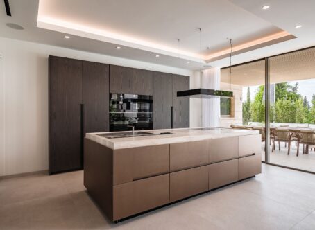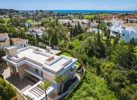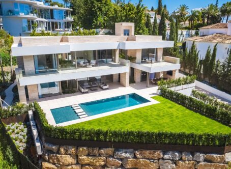 Villa facing south west built to a very high standard and with many features. Enjoying a prime corner plot with its own cul de sac entrance, this beautiful new villa boasts spectacular design and finishing. The features include a total of over 900m2 of built area including terraces, over 3 floors, plus a glorious rooftop solarium. In addition to the exceptional living area, the property also has an entertainment room, utilility room, state of the art domotics, underfloor heating, a lift, a gymnasium and spa. Interior garage parking for 3 cars and car ports for 2 more add to the privacy and security. Automatic remote turntable for cars at entrance door. Views of the surrounding valley and the sea in the distance. The villa has just been completed and is ready to move in. Features and finishes: Top quality kitchen, Domotic system, Air conditioning, underfloor heating, Fitted wardrobes, large tile porcelanic floors, Lift, alarm, sauna, barbecue area on roof top terrace, and an Automatic irrigation system Situated near amenities such as restaurants, supermarket, tennis club, golf clubs, and the 5 star Hotel Villa Padierna.