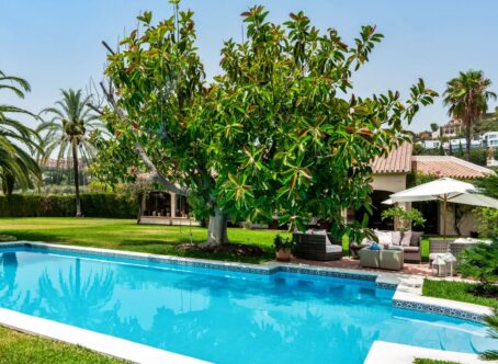 Discover the epitome of luxury living in this exquisite villa nestled in the prestigious enclave of La Quinta, Benahavís, Costa del Sol. This stunning property offers an unparalleled blend of elegance, comfort, and modern sophistication, making it the perfect sanctuary for those seeking a refined lifestyle in one of Spain's most sought-after locations. Set on an expansive 5,227 m² plot, this magnificent villa boasts a generous 577 m² of meticulously designed living space. The property features four spacious bedrooms, each with its own en-suite bathroom, ensuring privacy and convenience for family and guests alike. An additional guest toilet adds to the functionality of this exceptional home. As you step inside, you are greeted by an impressive entrance hall that leads to a series of beautifully appointed living areas. The open-plan design seamlessly integrates the living room, dining area, and gourmet kitchen, creating a harmonious flow that is perfect for both entertaining and everyday living. Large windows and sliding glass doors flood the interior with natural light, while offering breathtaking views of the surrounding landscape. The villa's outdoor spaces are equally captivating, with meticulously landscaped gardens, a private swimming pool, and multiple terraces that provide the ideal setting for al fresco dining and relaxation. Whether you are hosting a summer soirée or enjoying a quiet evening under the stars, this property offers the perfect backdrop for every occasion. Located in the heart of La Quinta, Benahavís, this villa is part of a vibrant community known for its exclusivity and tranquility. La Quinta is renowned for its world-class golf courses, making it a haven for golf enthusiasts. The area is also home to a variety of upscale amenities, including fine dining restaurants, chic boutiques, and luxurious spas, ensuring that residents have everything they need at their fingertips. Families will appreciate the proximity to some of the best international schools in the region, providing top-tier education options for children of all ages. For those who enjoy an active lifestyle, the area offers a wealth of sports facilities, including tennis courts, fitness centers, and hiking trails that wind through the stunning Andalusian countryside. Benahavís itself is a charming village known for its rich cultural heritage and picturesque setting. Nestled between the Sierra Blanca mountains and the Mediterranean Sea, it offers a unique blend of natural beauty and modern convenience. The village is just a short drive from the bustling city of Marbella and the glamorous Puerto Banús, where you can indulge in high-end shopping, dining, and entertainment. In summary, this villa in La Quinta, Benahavís, is a rare gem that combines luxurious living with the serenity of nature. With its prime location, exceptional amenities, and exquisite design, it presents a unique opportunity to experience the best of the Costa del Sol. Don't miss your chance to own a piece of paradise in this coveted destination.