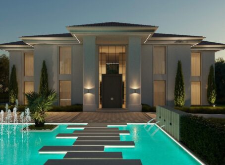 New project of a contemporary design villa on the first line of the La Alqueria golf course. Quality materials and finishes, as well as a beautiful panoramic view of the golf course. 616 m2 built on 2 levels plus large basement. Immense terraces on 131 m2. Nearby is a Mercadona supermarket, resytaurants, golf courses and an International school.
