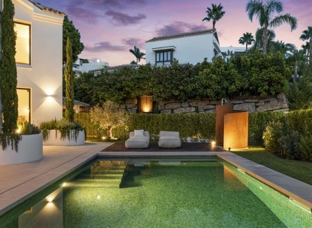Elegant fully renovated 4-Bedroom Villa in La Alquería, Benahavís Welcome to Villa Buda, a beautifully designed 4-bedroom, 4-bathroom residence with an additional guest toilet, nestled in the sought-after gated community of La Alquería, Benahavís. Offering 24-hour security, this villa combines modern comfort, privacy, and style—perfect for those seeking a refined Mediterranean lifestyle. Step inside to a bright, open-plan layout featuring a fully fitted kitchen equipped with premium Miele appliances, flowing seamlessly into the spacious living and dining areas. Designed for year-round comfort, the villa includes air conditioning with heating, as well as underfloor heating in all bedrooms and bathrooms. Each of the four en-suite bedrooms is tastefully appointed, providing both comfort and privacy for residents and guests alike. Upstairs, a private terrace offers partial sea views, creating the ideal spot for morning coffee or evening relaxation. Outside, enjoy the lush landscaped garden and private pool, covered and open terraces, an outside kitchen with bbq, perfect for entertaining or unwinding in the sun. Additional features include a carport with space for three vehicles and ample storage. Whether you're looking for a permanent home or a luxury retreat, Villa Buda offers the perfect blend of tranquility, security, and modern living—just a short drive from Marbella and the coast. The furniture is not included in the asking price, but negotiable!
