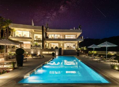 Unbelievable newly built modern villa located in La Zagaleta, the most exclusive gated community in Europe with 24-hour security.The property resides a 5-minute drive from the south gate, a stone’s throw away from the equestrian center and a two-minute drive to the club house where you will find two truly magnificent golf courses which are some of the amenities that La Zagaleta has to offer. This magnificent property is accessed by its sweeping driveway that leads to the impressive double door entrance and glass façade where you can see straight through to the incredible sea views beyond. There is parking for 10 cars at the entrance or you can use the turning circle to drive down to the underground garage for 4 cars. The property has been built on flat level plot of 5.394m2 that enjoys outstanding sea, valley and mountain views from all levels of the villa. The double door entrance opens onto a grand hall with double height ceiling and the show stopping loft style floating staircase that leads all the way up to the rooftop solarium.On this level you will find the formal living area, dining room that seats 12 and the large kitchen with top of the range appliances, cooking island and floating dinning table. All of which enjoy outstanding sea, valley and mountain views through the floor to ceiling windows and doors that lead onto the spectacular outdoor terrace and garden area with a fullyfitted outdoor kitchen and BBQ area, magnificent swimming pool, manicured and private rear garden. On this floor you will also find a separate TV room, pantry, beautiful office with mountain views, one of the guest suites and the guest toilet.The first floor is separated into two wings, one of which includes the very large master suite boasting panoramic views, his and hers full bathrooms and walk in wardrobes and one of the guest suites, across the glass gallery to the other wing there are a further 2 guest suites one of which has a private terrace.The lower level of this villa offers a sensational full indoor spa which has a heated swimming pool with a top of the range counter current swimming machine, sauna, steam room, full bathroom and changing area. A fully equipped gym, large entertainment room with a pool table, bar and lounge area. A climatized wine cellar, the one-bedroom guest apartment which includes a fully equipped kitchen and bathroom.A rooftop solarium that makes the perfect chillout area to sit back and enjoy the unbeatable views. Home automation system, underfloor heating throughout, integrated A/C and heating system, sound system throughout the whole property including outdoor terrace areas. Possibility to incorporate a lift to all floors. A truly one off be spoke villa