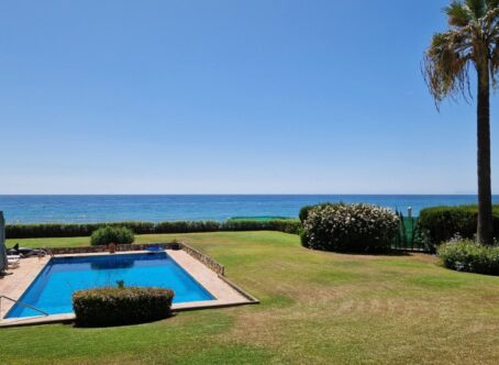 Villa built many years ago in a fantastic and unique location on the seafront between San Pedro and Estepona. The plot is slightly elvated over the pedestrian promenade so there is absolute privacy and all you see is the beautiful mediterranean sea. The villa is situated at the higher part of the plot with a lovely extension of garden which sweeps down to the pool and from where you can observe the boats passing by. The property needs a total renovation and would make a lovely residence by the sea. There is a small basement which could also be renovated. One of the last opportunities to purchase a beachfront property.