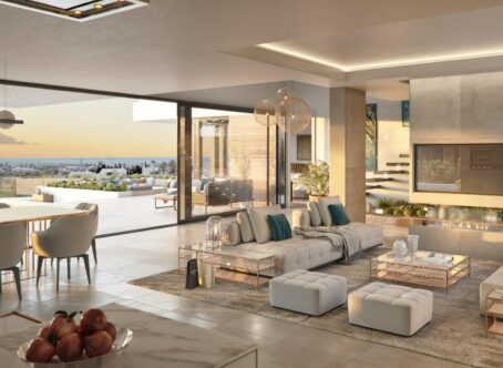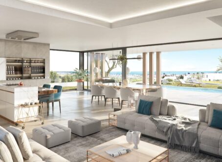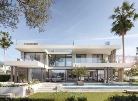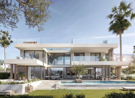 The New Golden Mile becomes the host of an elegant luxury concept – an unprecedented development. Unique villas where Avant-Garde design marks a turning point for connoisseurs of fine living. In a charming atmosphere, bathed in the light of the Mediterranean and blessed with the most beautiful sunsets, perfect natural elements combine to create dream villas that reach perfection. A stunning villa in all its spaces, allowing the magnificent breeze of the Mediterranean to travel to every corner of the home and bring well-being to its owner. The concept and sense of these villas is to share great moments with maximum privacy and prioritising comfort. Featuring a crystal wrap design for maximum light, to reflect freedom and fill the magnificent interior with life. Among the most outstanding ingredients is the serene elegance of the design, the perfect combination of textures and materials along with the spectacular location in which they are situated. The utmost care has been taken in the design of these villas to create an exquisite work of art, to appeal to those with a discerning taste. To live in this Villa, is an ovation to elegance, a tribute to luxury and a pleasure in its purest form. The location is within walking distance of a small village with restaurants and shops, and very near some of the top golf courses along the coast. Once you reserve this villa, it will take approximately two years to obtain license and to build.