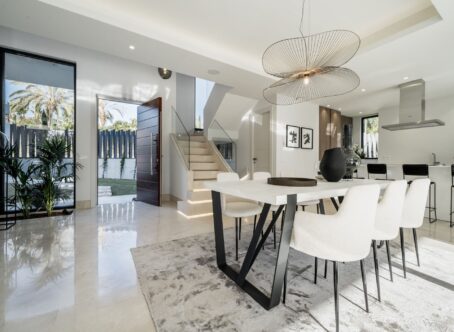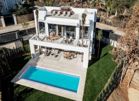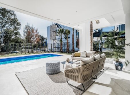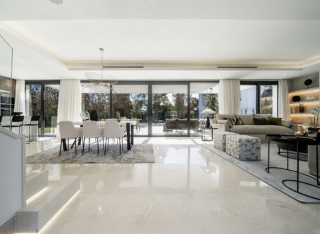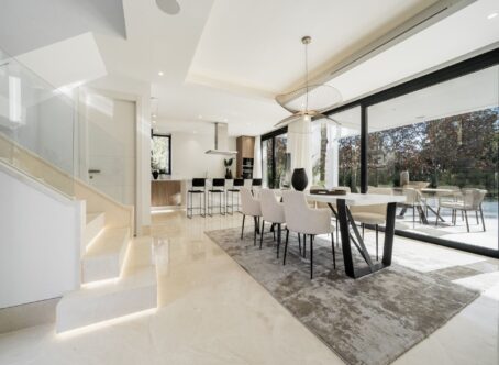 Discover the epitome of luxury living in this stunning villa located in the prestigious enclave of El Paraíso, nestled along the New Golden Mile in Estepona, Costa del Sol. This exquisite property offers an unparalleled blend of elegance, comfort, and modern design, making it the perfect sanctuary for those seeking a sophisticated lifestyle in one of Spain's most sought-after regions. Set on a generous 775 m² plot, this magnificent villa boasts a total built area of 538 m², with 330 m² dedicated to interior living space. The property features four spacious bathrooms and an additional guest toilet, ensuring ample convenience for residents and guests alike. Each room is thoughtfully designed to maximize space and natural light, creating a warm and inviting atmosphere throughout. Upon entering the villa, you are greeted by an expansive open-plan living area that seamlessly integrates the living room, dining area, and a state-of-the-art kitchen. The kitchen is equipped with top-of-the-line appliances and high-quality finishes, perfect for culinary enthusiasts and entertaining guests. Large sliding glass doors open up to a beautifully landscaped garden, offering a seamless transition between indoor and outdoor living spaces. The outdoor area is a true oasis, featuring a private swimming pool surrounded by lush greenery, providing a serene setting for relaxation and leisure. The spacious terrace is ideal for al fresco dining and enjoying the Mediterranean climate, while the meticulously maintained garden offers a tranquil retreat from the hustle and bustle of everyday life. The villa's four bedrooms are generously sized, each offering en-suite facilities and ample closet space. The master suite is a true haven, complete with a luxurious bathroom and a private terrace that offers breathtaking views of the surrounding landscape. Additional features of this exceptional property include a private garage, underfloor heating, and air conditioning, ensuring year-round comfort. El Paraíso is a prestigious residential area located on the New Golden Mile, Estepona, known for its exclusive properties and tranquil surroundings. This prime location offers easy access to a wealth of amenities, including world-class golf courses, fine dining restaurants, and upscale shopping centers. Estepona's charming town center is just a short drive away, offering a vibrant mix of traditional Spanish culture and modern conveniences. Families will appreciate the proximity to reputable international schools, ensuring quality education for children of all ages. For sports enthusiasts, the area boasts a variety of facilities, including tennis clubs, fitness centers, and water sports activities along the stunning Costa del Sol coastline. In summary, this exceptional villa in El Paraíso offers a unique opportunity to experience the best of luxury living in Estepona. With its prime location, exquisite design, and proximity to a wide range of amenities, this property is the perfect choice for discerning buyers seeking a sophisticated lifestyle in the heart of the Costa del Sol. Don't miss the chance to make this dream home your reality. Contact us today to arrange a private viewing and discover all that this remarkable villa has to offer.
