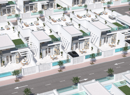 <strong>SPECIAL OFFERS APPLY - contact us for more information. Furniture, ac and decorative items included.</strong> Location location location is what it is all about and we think these new three bedroom single storey villas have a superb position situated walking distance to the beach and all the amenities that the charming coastal town of Los Alcazares has to offer including some great Spanish restaurants such as Ramones, Tropical and Encarnacion. There is also a bus route that takes you up to the 525 square. Ready  May 2026 This is a small development of 5 villas located at La Serena Golf in Los Alcazares.  As you enter the property there is a 32m2 open plan lounge kitchen diner with patio doors leading out to the walled garden which has a private swimming pool with a waterfall. There is a family bathroom and three double bedrooms with fitted wardrobes and patio doors to the garden, the master bedroom has an ensuite bathroom. Outside the garden wraps round the side of the villa where there is a pergola area for the car and also round the rear, there are stairs to the side that lead up to the large roof solarium that has a summer kitchen and an astroturfed area to the front. Contact us to arrange to view these stunning villas.