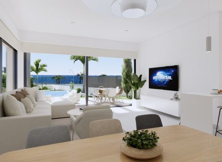 <strong>SPECIAL OFFERS APPLY - contact us for more information.</strong> A fabulous opportunity to purchase a brand new villa located in a rarely available frontline beach position in Los Narejos, within a secure gated development with 24 hour security. Located on a frontline beach plot next to the popular Spinosa Kite Surf centre and restaurant, these fantastic villas have gardens backing on to the promenade and beach. The properties are finished to exacting standards which includes vented air conditioning throughout , an aerothermal hot water system, electric blinds, saltwater swimming pool, exterior LED lighting and a solarium with jacuzzi. There are three bedrooms one on the ground floor and two on the first floor, three bathrooms, an open plan living space, contemporary kitchen with Silestone worktops and a garage. Outside there is a garden with private saltwater pool, a driveway and a solarium with hot tub and sea views. These villa are selling quickly. If you are interested please contact us asap.