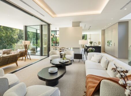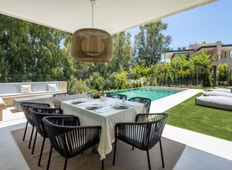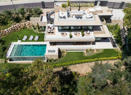 Villa Selene is a luxurious, fully furnished villa for sale in La Cerquilla. Designed with sustainability, elegance, and seamless integration into its lush natural surroundings. Crafted from organic materials and nestled in greenery, this architectural gem offers an exceptional living experience in harmony with nature. The ground floor includes a living room, open-plan kitchen, dining room, TV room/office, and one en-suite bedroom. This floor extends effortlessly to the terraces, featuring an outdoor kitchen, living area, dining area, and pool area. The first floor boasts a master bedroom with a walk-in closet and two additional en-suite bedrooms. The rooftop terrace offers seating areas, a fire pit, a jacuzzi, and provisions for another outdoor kitchen. The basement includes a TV room with pre-installed kitchenette connections, providing extensive customization options. It also hosts a games room, gym, spa with a sauna and Hammam, one en-suite bedroom, and an additional bedroom/office that shares a bathroom with the gym area. The basement’s bedroom and TV room come with pre-installed kitchenette connections, offering further customization options. The villa allows for flexible remodeling of the top floor to suit your preferences. Embrace sustainable living with pre-installed solar panels on the sundeck and enjoy the convenience of user-friendly home automation, accessible through a single app on your phone. Revel in comfort with zoned floor heating and indulge your culinary desires with Gaggenau kitchen appliances. Elevate your bathing experience with faucets and sanitary ware from Villeroy & Boch and Grohe, and relax in infinity pools with salt chlorination. The villa also features seamless technology integration, with pre-installations for curtain motorisation and various TV placement options in designated entertainment spaces. Designed with convenience in mind, gardeners can access equipment rooms without entering the villas, ensuring privacy and efficiency. Villa Selene offers flexibility in configuring the top floor to suit individual preferences. The villa is fully furnished, with all furniture included in the price.
