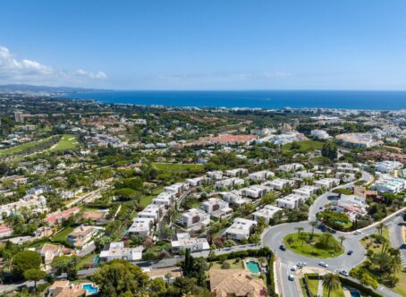 This is a villa in a new project of villas within a gated community situated in a central location of Nueva Andalucia within walking distance to restaurants, supermarket, pharmacy and other amenities. Prime golf courses, tennis clubs, the beach, shopping center and Puerto Banus are just a few minutes away. Built to a high specification, with modern design, the villa has sea and mountain views. There is a clubhouse with facilities such as heated pool, state of the art spa and a magnificent gymnasium. The villa also has a basement with space for a private gym, home cinema or entertainment room. The villa will have a double height ceiling in the living room, open plan dining and kitchen area, top quality materials and shall include a Bulthaup kitchen with Gaggenau appliances, gessi taps, cortizo windows, underfloor heating by water, Daikin airconditioning with individual airzone controls, and a home automation system. The villa also has a rooftop solarium from where the views are even better and a spacious garage. The complex has only one entry and exit point controlled by security 24 hours and this helps to privacy, seclusion and makes your property more secure. Completion shall be in year 2027. A unique property within a gated community, in a central location and with views.