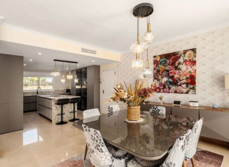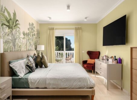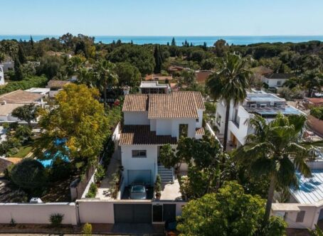 This lovely 4-bedroom villa is offered for sale in a quiet and private environment of Nagüeles, a prestigious and classy area on the Golden Mile of Marbella. A slightly elevated position above the glamorous coastal strip of the Golden Mile gives the high-end properties of Nagüeles magnificent views of the Mediterranean Sea and iconic La Concha Mountain. Adjacent to 2 of Marbella’s most exclusive areas, Cascada de Camojan and Sierra Blanca, Nagüeles was one of the first high-end urbanisations in Marbella. It has retained its original cache and sense of style. Living here is living in exquisite luxury. The location is very peaceful and convenient, close to everything you need for the most comfortable life. Finding a more beautiful beach than Playa Nagüeles is probably impossible. Boasting the Blue Flag, it is lined by some of the most exclusive restaurants, beach clubs and hotels on the Costa del Sol. You will live minutes away from superb golf courses, glamorous Puerto Banús and of course, all amenities of Marbella Golden Mile. It is also the perfect area for families, since it is very close to several excellent international schools. The journey time to Malaga and Gibraltar airports is less than an hour. Surrounded by beautiful vegetation and similar luxury properties of Marbella Golden Mile, the 344m² house full of southern charm, sits on 538m². It is in full harmony with its lush green environment and offers idyllic nature views and a beautiful concept of stress-free, luxurious Mediterranean life. The exquisite white villa's design has attractive features including lovely terraces, a subtropical garden and a swimming pool, which transform the home into a real Mediterranean sanctuary for year-round enjoyment. Built to the high standards, the high-end property offers luminous and airy living and dining spaces, fully fitted kitchen, 4 serene bedrooms and 3 bathrooms, etc. The interior seamlessly connects to the stunning terraces, fostering a harmonious indoor-outdoor flow. Thanks to the glass doors the villa is bathed in natural light. The outdoor areas are ideal for chilling out, having dinners al fresco and BBQ with friend and family. Surrounded with a landscaped garden, the pool area invites to swim, sunbathe and soak up the sun, enjoying the climate that is considered the best in continental Europe. With its super attractive location and classic luxury, this residence is ideal for the famous Marbella lifestyle.