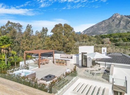 **Exquisite Villa in Puente Romano: A Luxurious Oasis on the Golden Mile, Marbella** Welcome to an unparalleled living experience in the heart of the prestigious Golden Mile, Marbella. Nestled within the exclusive enclave of Puente Romano, this magnificent villa offers a harmonious blend of opulence, privacy, and modern sophistication. With a sprawling 1,556 m² plot and an impressive 903 m² of meticulously crafted living space, this property is a testament to luxury living on the Costa del Sol. As you enter this stunning villa, you are greeted by an expansive foyer that sets the tone for the grandeur that lies within. The open-concept design seamlessly integrates the living, dining, and kitchen areas, creating a perfect space for both entertaining and everyday living. The state-of-the-art kitchen is a chef's dream, featuring top-of-the-line appliances, custom cabinetry, and a large island that invites culinary creativity. The villa boasts six elegantly appointed bathrooms and a convenient guest toilet, each designed with the finest materials and finishes. The master suite is a sanctuary of comfort and style, offering a private terrace with breathtaking views, a spacious walk-in closet, and a luxurious en-suite bathroom complete with a soaking tub and rain shower. Outdoor living is at its finest with beautifully landscaped gardens, a sparkling swimming pool, and multiple terraces that provide the perfect setting for al fresco dining and relaxation. The villa's architecture seamlessly blends indoor and outdoor spaces, allowing you to enjoy the Mediterranean climate year-round. Located in the coveted Puente Romano area, this villa offers more than just a home; it provides a lifestyle. The Golden Mile is renowned for its exclusivity and elegance, attracting discerning buyers from around the world. This prime location offers easy access to Marbella's finest amenities, including world-class dining, high-end shopping, and vibrant nightlife. Families will appreciate the proximity to some of the best international schools in the region, ensuring a top-tier education for children of all ages. For sports enthusiasts, the area is a paradise, with numerous golf courses, tennis clubs, and water sports facilities nearby. The renowned Puente Romano Tennis Club, just a short stroll away, offers exceptional facilities and hosts prestigious tournaments throughout the year. In addition to its luxurious features and prime location, this villa is a gateway to the rich cultural heritage and natural beauty of Andalusia. From the historic charm of Marbella's Old Town to the stunning beaches of the Costa del Sol, there is no shortage of experiences to enjoy. This villa in Puente Romano is more than just a property; it is an invitation to live the life of your dreams on the Golden Mile. Whether you are seeking a permanent residence, a holiday retreat, or a savvy investment, this villa offers unparalleled value and an opportunity to own a piece of paradise in one of the most sought-after destinations in the world. Don't miss the chance to make this extraordinary villa your own. Contact us today to schedule a private viewing and discover the epitome of luxury living in Marbella.