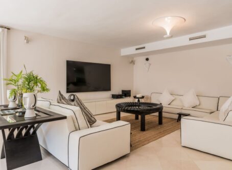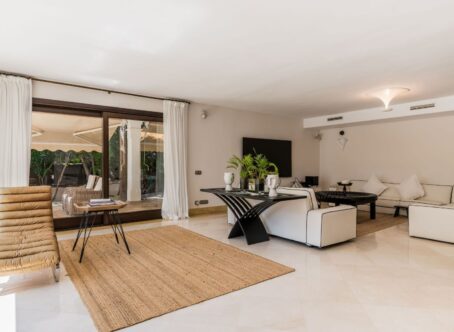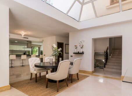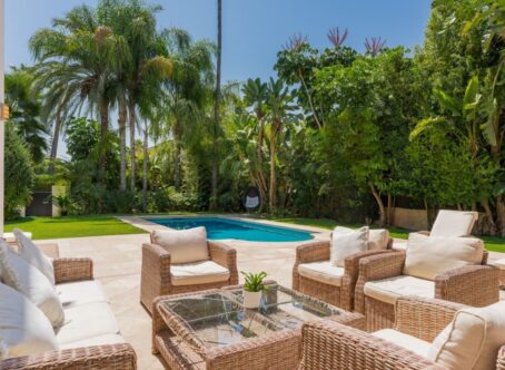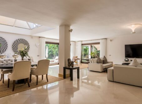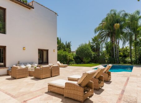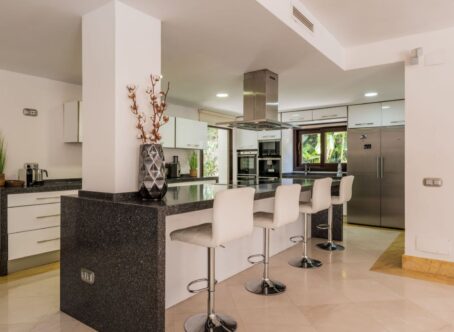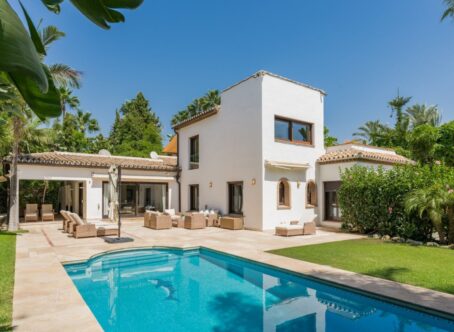Welcome to your dream home in the heart of the Costa del Sol, where luxury meets tranquility in the prestigious neighborhood of Las Brisas, Nueva Andalucía, Marbella. This exquisite villa offers an unparalleled living experience, combining modern elegance with the charm of Andalusian architecture. Nestled on a generous 1100 m² plot, this stunning property boasts a spacious 453 m² of meticulously designed living space. As you step inside, you are greeted by an inviting foyer that leads to an expansive open-plan living area, perfect for both relaxation and entertaining. The villa features four elegantly appointed bedrooms, each with its own en-suite bathroom, ensuring privacy and comfort for all residents. Additionally, a stylish guest toilet is conveniently located for visitors. The heart of the home is the state-of-the-art kitchen, equipped with top-of-the-line appliances and ample storage, making it a chef's delight. The dining area seamlessly flows into the living room, which is adorned with large windows that flood the space with natural light and offer breathtaking views of the surrounding landscape. Step outside to discover your private oasis. The beautifully landscaped garden is a haven of peace and serenity, featuring a sparkling swimming pool, perfect for cooling off on warm summer days. The spacious terrace provides an ideal setting for alfresco dining and entertaining, while enjoying the stunning vistas of the nearby mountains and lush greenery. This villa is not just a home; it's a lifestyle. Located in the sought-after area of Las Brisas, you are surrounded by some of the finest amenities Marbella has to offer. Nueva Andalucía is renowned for its exclusive golf courses, including the prestigious Las Brisas Golf Club, making it a golfer's paradise. The area is also home to a variety of high-end restaurants, chic boutiques, and vibrant nightlife, ensuring there is always something to do. Families will appreciate the proximity to some of the best international schools in the region, providing top-tier education for children of all ages. For sports enthusiasts, Nueva Andalucía offers a wealth of facilities, including tennis clubs, fitness centers, and equestrian centers, catering to a wide range of interests. Nueva Andalucía, often referred to as the "Golf Valley," is a picturesque residential area that combines the best of both worlds: the tranquility of suburban living with the convenience of being just a short drive from the bustling center of Marbella. The area is characterized by its beautiful villas, lush gardens, and stunning views of the surrounding mountains and the Mediterranean Sea. In summary, this villa in Las Brisas, Nueva Andalucía, is a rare gem that offers luxury, comfort, and convenience in one of the most desirable locations on the Costa del Sol. Whether you are looking for a permanent residence or a holiday retreat, this property is sure to exceed your expectations. Don't miss the opportunity to make this dream home your reality. Contact us today to arrange a private viewing and experience the magic of this exceptional villa for yourself.