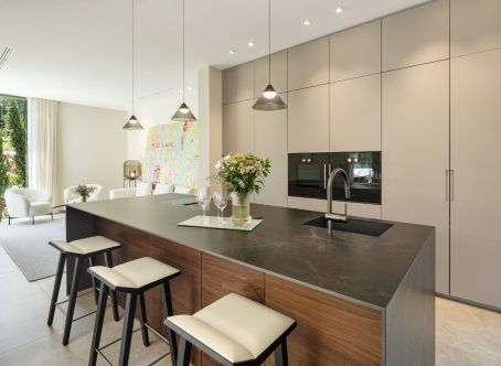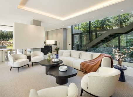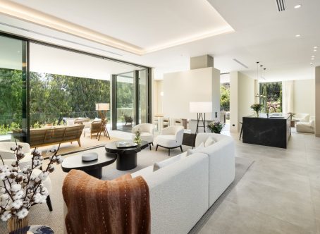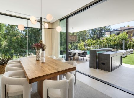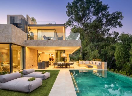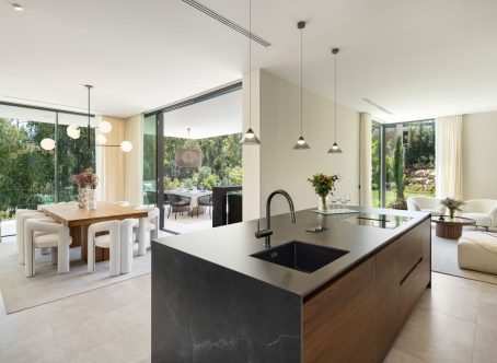 Villa Selene is a luxurious, fully furnished villa for sale in La Cerquilla. Designed with sustainability, elegance, and seamless integration into its lush natural surroundings. Crafted from organic materials and nestled in greenery, this architectural gem offers an exceptional living experience in harmony with nature. The ground floor includes a living room, open-plan kitchen, dining room, TV room/office, and one en-suite bedroom. This floor extends effortlessly to the terraces, featuring an outdoor kitchen, living area, dining area, and pool area. The first floor boasts a master bedroom with a walk-in closet and two additional en-suite bedrooms. The rooftop terrace offers seating areas, a fire pit, a jacuzzi, and provisions for another outdoor kitchen. The basement includes a TV room with pre-installed kitchenette connections, providing extensive customization options. It also hosts a games room, gym, spa with a sauna and Hammam, one en-suite bedroom, and an additional bedroom/office that shares a bathroom with the gym area. The basement’s bedroom and TV room come with pre-installed kitchenette connections, offering further customization options. The villa allows for flexible remodeling of the top floor to suit your preferences. Embrace sustainable living with pre-installed solar panels on the sundeck and enjoy the convenience of user-friendly home automation, accessible through a single app on your phone. Revel in comfort with zoned floor heating and indulge your culinary desires with Gaggenau kitchen appliances. Elevate your bathing experience with faucets and sanitary ware from Villeroy & Boch and Grohe, and relax in infinity pools with salt chlorination. The villa also features seamless technology integration, with pre-installations for curtain motorisation and various TV placement options in designated entertainment spaces. Designed with convenience in mind, gardeners can access equipment rooms without entering the villas, ensuring privacy and efficiency. Villa Selene offers flexibility in configuring the top floor to suit individual preferences. The villa is fully furnished, with all furniture included in the price.