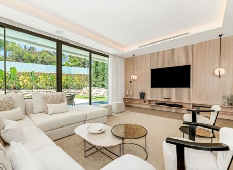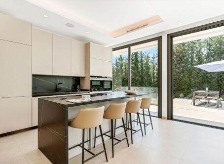 Welcome to your dream home in the heart of the Costa del Sol, where luxury meets tranquility in the prestigious enclave of Nueva Andalucía, Marbella. This stunning villa offers an unparalleled living experience, combining modern elegance with the timeless beauty of Andalusian architecture. Nestled on a generous 1000 m² plot, this exquisite property boasts 770 m² of meticulously designed living space, providing the perfect sanctuary for those seeking both comfort and sophistication. As you step inside, you are greeted by an expansive open-plan living area that seamlessly blends indoor and outdoor living. The spacious living room, adorned with high ceilings and large windows, invites an abundance of natural light, creating a warm and inviting atmosphere. The state-of-the-art kitchen, equipped with top-of-the-line appliances and sleek finishes, is a culinary enthusiast's dream, offering both functionality and style. This villa features four luxurious bathrooms and an additional guest toilet, each designed with the finest materials and attention to detail. The master suite is a true retreat, complete with a private terrace that offers breathtaking views of the surrounding landscape. Each bedroom is a haven of comfort, providing ample space and privacy for family and guests alike. The outdoor area is a true oasis, featuring a beautifully landscaped garden and a stunning swimming pool, perfect for enjoying the Mediterranean climate. Whether you are hosting a summer soirée or simply unwinding after a long day, this outdoor space offers endless possibilities for relaxation and entertainment. Located in the sought-after area of Nueva Andalucía, this villa is perfectly positioned to enjoy the best of Marbella. Known for its luxurious lifestyle and vibrant community, Nueva Andalucía is a golfer's paradise, with several world-class golf courses just a stone's throw away. The area is also home to a variety of upscale dining and shopping options, ensuring that every convenience is at your fingertips. Families will appreciate the proximity to some of the best international schools in the region, providing excellent educational opportunities for children of all ages. For sports enthusiasts, Nueva Andalucía offers a wealth of facilities, including tennis clubs, fitness centers, and equestrian centers, catering to a wide range of interests. Nueva Andalucía is a picturesque residential area that combines the charm of traditional Andalusian architecture with modern amenities. Its strategic location offers easy access to the vibrant nightlife of Puerto Banús and the cultural attractions of Marbella's historic old town. With its stunning natural beauty and luxurious lifestyle, Nueva Andalucía is the perfect place to call home. Don't miss the opportunity to own this exceptional villa in one of Marbella's most desirable neighborhoods. Contact us today to schedule a private viewing and experience the epitome of luxury living on the Costa del Sol.