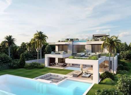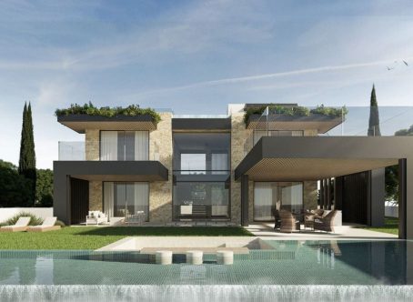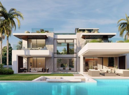 New Development: Prices from 7,300,000 € to 7,300,000 €. [Beds: 7 - 7] [Baths: 8 - 8] [Built size: 720.00 m2 - 720.00 m2] This villa is in a private gated community. This splendid luxury villa project is set on a private plot of 1,550 m², located just a few minutes from Puerto Banús in the exclusive area of Altos de Puente Romano on the Golden Mile. A majestic entrance with a water feature welcomes you into this wonderful property. The large windows bring in abundant natural light throughout the villa and create a seamless connection between the indoors and the surrounding nature. Its wide entrance opens to a spacious and bright living-dining room with a fireplace and a functional luxury kitchen fully equipped with high-end finishes. From the living/dining area, you have access to a large, partly covered terrace featuring various lounge and seating areas, including a firepit area by the pool. The outdoor area also includes a bar and an outdoor kitchen, a large 70 m² heated saltwater pool, and lush gardens. The house offers 7 large bedrooms, all with en-suite bathrooms, including a studio apartment. There are 3 bedrooms in the basement with exterior windows and natural light, one bedroom on the ground floor, and 3 on the first floor. One of these is a very spacious master suite with a dressing room and a large en-suite bathroom with both a bath and a shower. An elevator connects all floors, from the basement to the solarium, where you will find multiple areas for sitting, dining, and sunbathing next to the plunge pool/jacuzzi. You can also enjoy a drink at the rooftop bar, which includes an outdoor kitchenette. There is an additional shower room on this level. Other features include: - Underfloor heating throughout the entire house - Hot/cold air conditioning controlled by an aerothermal system - A gas open fireplace - A large lift for 4 people - A sauna - A gym - A garage large enough for 3 cars Completion is expected by February 2026.