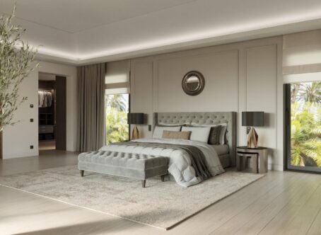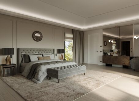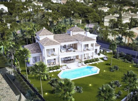 The Villa activates a true sense of wellbeing. It has everything that defines a unique, distinguished lifestyle. The stunning villa with the classic Andalusian architecture and tiled roof offers an incomparable mix of contemporary chic and traditional allure. It will satisfy even the most demanding customers. The mansion is a real work of art that combines elegance and comfort. It is built on the spacious plot and provides a lot of privacy. A magnificent garden will be one of your favourite places for taking a walk and relaxing after a long day. The villa consists of 6 bedrooms and 9 bathrooms. Spaciousness and style make life at this property even more inspiring. It is an example of how high quality matches with a unique style and refined taste.We’ve paid special attention to every detail and the selection of materials and its quality. Many internal elements make this contemporary home shine like a jewel. Large windows and sliding doors to the terrace areas allow generous light to flood the property. This villa has an additional space in the home solely devoted to the purpose of having fun or to retire and relax at one with yourself – Game room, Winery, Sauna, Turkish bath and Home library.