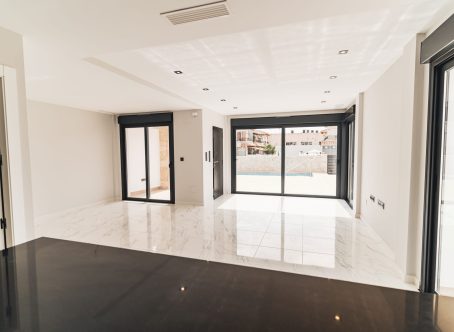 <strong>SPECIAL OFFERS APPLY - contact us for more information. </strong> We are pleased to market these stunning four bedroom three bathroom duplex villas in the bustling town of Pilar de La Horadada which has a great high street with bars, cafes, restaurants and amenities just a short walk from these properties. The beach in Torre de la Horadada is just a 7 minute bike ride or 29 min walk away too. There are only two available and both are corner 317m2 plots with a driveway and private pool. You enter the villa into the 34m2 open plan living dining kitchen which is soaked in light due to large corner patio doors that lead onto the garden and side patio doors too. Downstairs is a bedroom with fitted wardrobes and patio doors to the garden, a bathroom and an understairs cupboard. Upstairs you will find three further bedrooms with fitted wardrobes, a bathroom and the master has its own ensuite. There is a 10m2 terrace here too. Exterior stairs lead to the 52m2 solarium. Ready SOON!