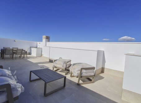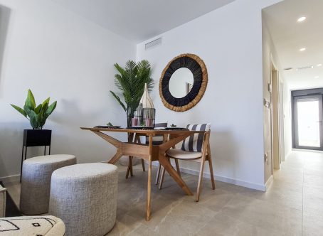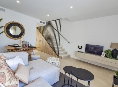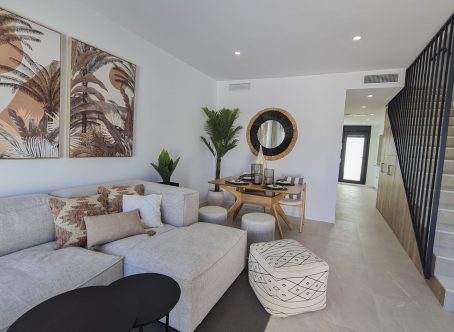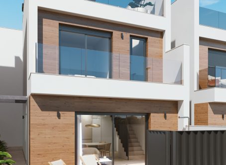 <strong>SPECIAL OFFER - 8000 EURO FURNITURE VOUCHER when you purchase one of these from us. </strong> We are delighted for offer for sale these three bedroom villas located close to restaurants and bars in San Pedro del Pinatar. This popular town has beaches, a marina and some of the best restaurants around! These villas have a large open-plan living space with modern fitted kitchen, ground floor bedroom and bathroom. The first floor comprises two further bedrooms, a bathrooms, sun terrace and steps leading up to a 35m solarium terrace Outside there is a garden with private swimming pool and off-street parking. These villas come with a photo-volataic solar panel for renewable energy. Contact us for a tour of the showhome.