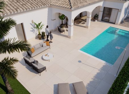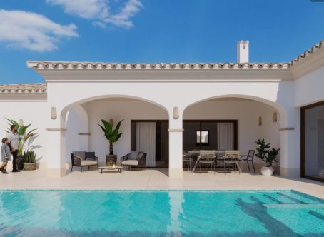 <strong>SPECIAL OFFERS APPLY - contact us for more information. </strong> These Mediterranean style new build three bedroom four bathroom villas are located in an ideal spot in the heart of San Pedro de Pinatar and just 5 minutes walk to the beach. In San Pedro you have some superb restaurants Like Venezuela and Rubio 360 and these are also just a short walk. These villas blend timeless Mediterranean architecture with a sleek, ultra-modern interior finish. Set on spacious 500 m² plots, each villa offers 3 ensuite bedrooms, expansive terraces, and a large private pool. With a classic Mediterranean exterior and a strikingly modern interior design, these homes deliver the best of both worlds. On entering the property you will find a spacious modern open plan lounge kitchen diner with large patio doors to the garden with a large terrace area and pool. Off the kitchen is a useful laundry room with access to the private garage. There are three double bedrooms with fitted wardrobes and patio doors to the garden. There are two ensuite bathrooms and a family bathroom. There is a fourth bathroom accessed from the garden too. We love these charming villas, contact us to arrange to view.