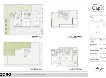 We are excited to offer these gorgeous three bedroom four bathroom villas located close to the clubhouse, lagoon and the reserva on Santa Rosalia Lake and Life Resort which is just 5 kms to the beach and the town of Los Alcazares. On entering the property you will find a bright lounge kitchen diner, the kitchen comes with Bosch integrated white goods and has an island and a door to the garden. There are two patio doors that lead to the garden which has an 18m2 salt water system pool with jacuzzi area, there is preinstallation for a heat pump, electric awnings and an electric car charger. On the ground floor there is also a double bedroom with fitted wardrobes and patio doors to the garden and a jack and jill bathroom. All the doors on the ground floor are wheelchair friendly. Upstairs are two further bedrooms with  ensuite bathrooms and access to the wrap around terrace, the master bedroom has a dressing room. Internal stairs lead to the roof solarium where there is a toilet room, preinstallation for a summer kitchen and two photovoltaic solar panels. There is a large underbuild that comes with tiled floors and plastered and painted walls, this is a great multifunctional room that has lots of light as there are two patio doors to the 25m2 english patio, there is preinstallation for a bathroom too. Other features include forced ventilation system for air renewal, aerothermal boiler and preinstallation for vented AC. Due to be finished first semester of 2027. Contact us to arrange a visit.
