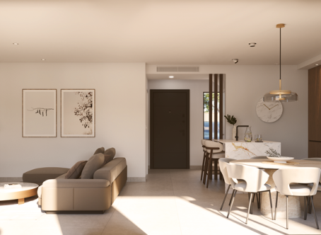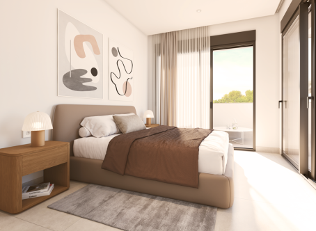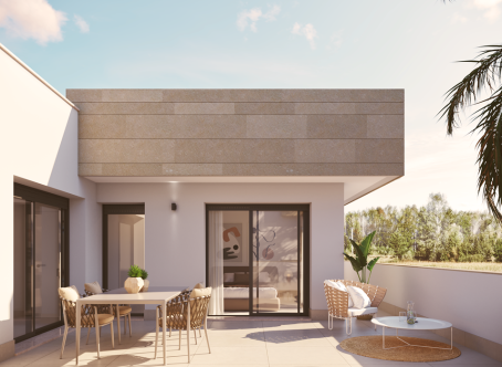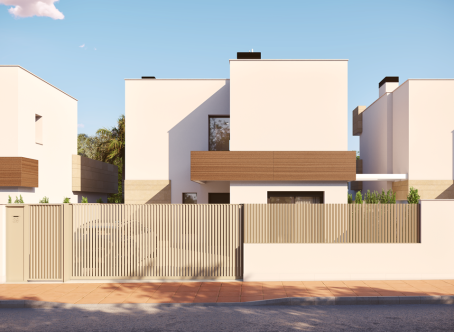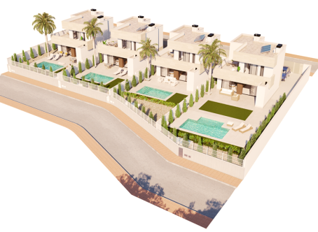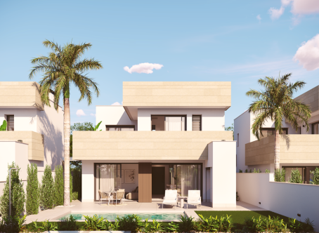 <strong>SPECIAL OFFERS APPLY - contact us for more information. </strong> We are delighted to offer these stunning three bedroom three bathroom villas with private pools located just 800m to the beach in Santiago de la Ribera. On entering the property you will find the entrance hall which to the right has the downstairs bedrooms with fitted wardrobes and an ensuite bathroom which is a Jack and Jill style so can also be accessed from the hallway. the open plan kitchen diner is 35m2 and bathed in light due to two large patio doors to the garden. The kitchen comes with an island and also white goods. The garden has a terrace area, 17m2 pool and a tiled area, to the front of the property is parking for one car. Upstairs are two further bedrooms with en suite bathrooms and fitted wardrobes and both bedrooms have patio doors to the terrace. This property comes with underfloor heating in the bathrooms, preinstalled vented AC, two solar panels with micro inverter, motorized blinds, aerothermal boiler and pvc windows with solar factor and gas argon chambers. Contact us to arrange to view this and others.