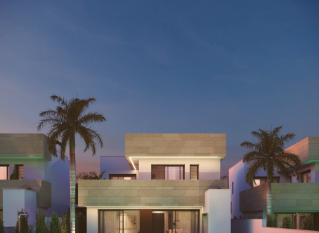 <strong>SPECIAL OFFERS APPLY - contact us for more information. </strong> We are delighted to offer these stunning three bedroom three bathroom villas with private pools located just 800m to the beach in Santiago de la Ribera. On entering the property you will find the entrance hall which to the right has the downstairs bedrooms with fitted wardrobes and an ensuite bathroom which is a Jack and Jill style so can also be accessed from the hallway. the open plan kitchen diner is 35m2 and bathed in light due to two large patio doors to the garden. The kitchen comes with an island and also white goods. The garden has a terrace area, 17m2 pool and a tiled area, to the front of the property is parking for one car. Upstairs are two further bedrooms with en suite bathrooms and fitted wardrobes and both bedrooms have patio doors to the terrace. This property comes with underfloor heating in the bathrooms, preinstalled vented AC, two solar panels with micro inverter, motorized blinds, aerothermal boiler and pvc windows with solar factor and gas argon chambers. Contact us to arrange to view this and others.