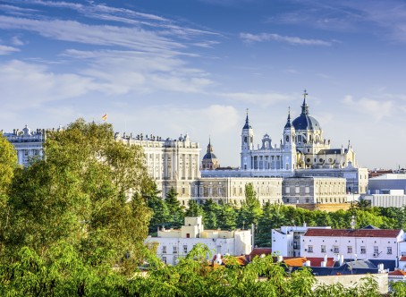 Beautiful View. The Madrid skyline at Santa Maria la Real de La Almudena Cathedral and the Royal Palace.